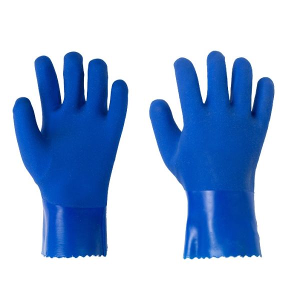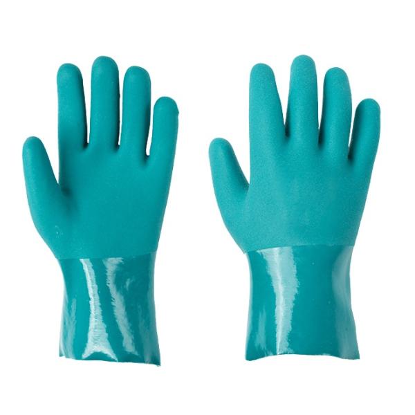 Large Hands Green PVC Cotton Chemical Resistant Gloves Images |